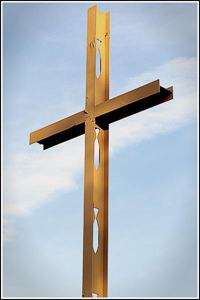 While wandering around our neighborhood I noticed that this cross had a bunch of jesus fish incorporated into its design, I thought it was interesting.